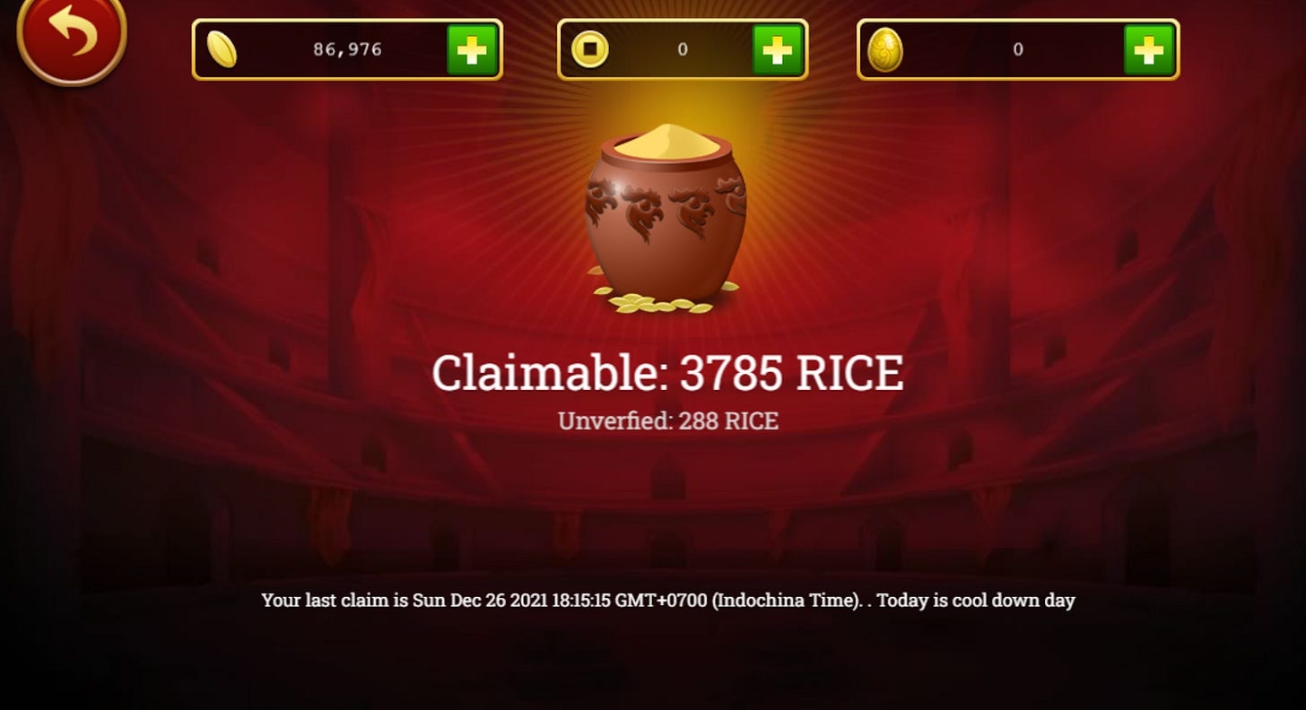1/ For players who have owned a lot of Chickens and played from December 20 to now: You can Claim RICE and Gameitems at the same time in the Claim Rewards section of the Game