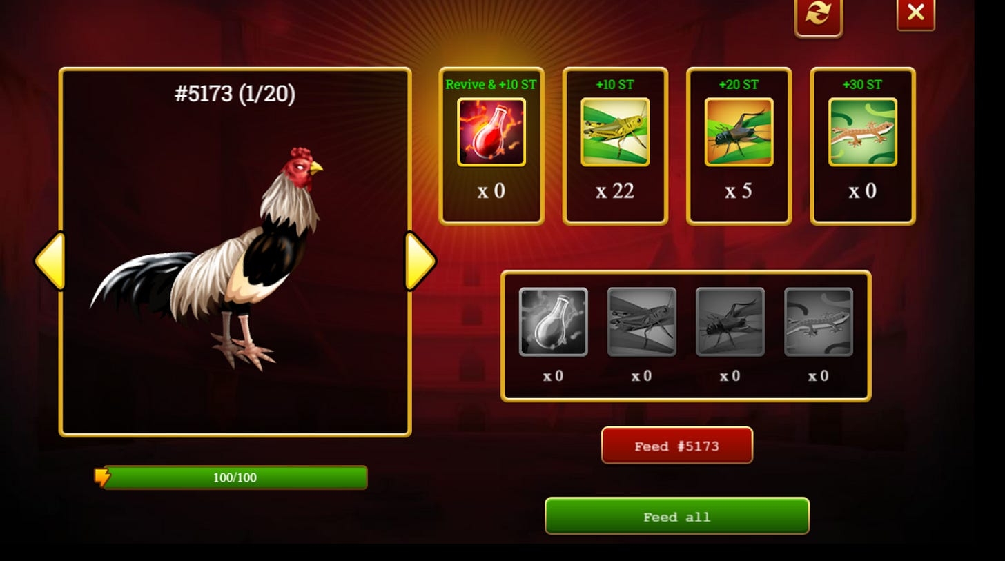 2. In-game: Cannot be sold in Marketplace, used in game to feed Roosters