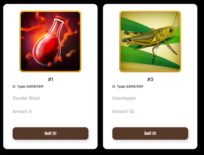 There are 2 status of Game Items: