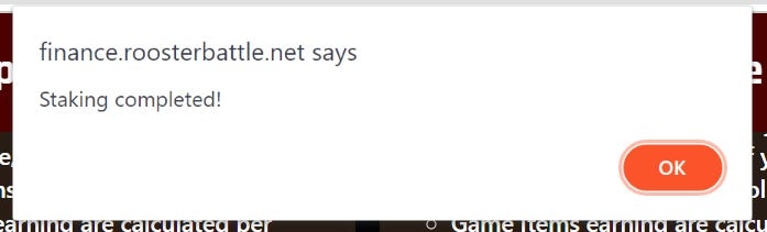 This notification will appears when you have staked successfully and now you will be waiting for your rewards.